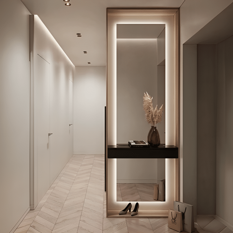 Equipado con un sensor de proximidad, nuestro espejo ofrece una experiencia sin contacto que añade un toque moderno y sofisticado a tu espacio. La luz se activa automáticamente cuando detecta el movimiento de la mano cerca del sensor, sin necesidad de tocar el espejo, lo que reduce las manchas y la necesidad de una limpieza constante.