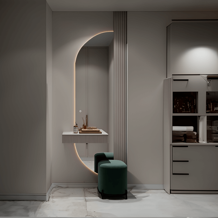 Equipado con un sensor de proximidad, nuestro espejo ofrece una experiencia sin contacto que añade un toque moderno y sofisticado a tu espacio. La luz se activa automáticamente al detectar movimiento de la mano cerca del sensor, sin necesidad de tocar el espejo, lo que reduce las marcas y la necesidad de limpieza constante.